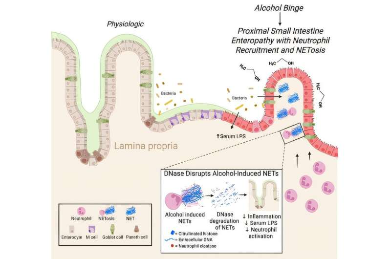 Articolul integral este acesta Scott B. Minchenberg et al, Unraveling the gastrointestinal tract’s response to alcohol binges: Neutrophil recruitment, neutrophil extracellular traps, and intestinal injury, Alcohol, Clinical and Experimental Research (2025). DOI: 10.1111/acer.70196