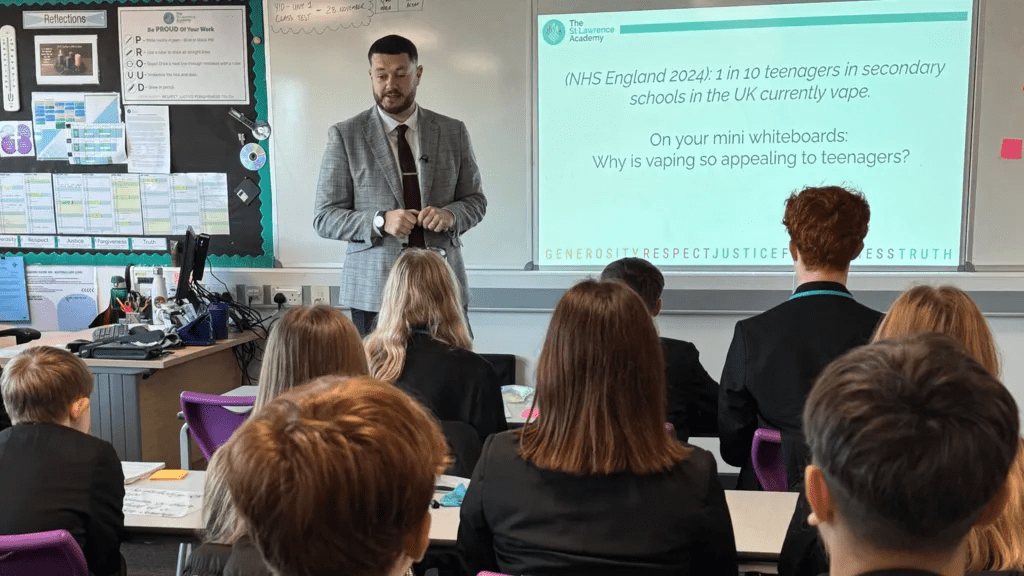 La St Lawrence Academy din Scunthorpe, Lincolnshire, personalul spune, de asemenea, că se confruntă cu o luptă pentru a preveni ca vapingul să interfereze cu orele de curs.